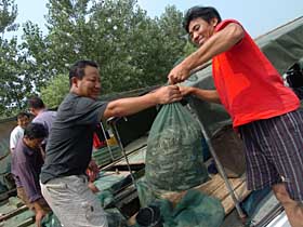 洪澤湖承轉(zhuǎn)淮河中上游15.8萬(wàn)平方公里的洪水,再通過4條水道入江入海下泄。作為調(diào)蓄洪水的水庫(kù),洪澤湖在淮河防洪中起著關(guān)鍵性的作用。 記者日前行進(jìn)在洪澤湖大堤上,這道被國(guó)家明確為任何時(shí)候都要“嚴(yán)防死守”的“生命線”,保護(hù)著洪澤湖以下2000萬(wàn)人的生命安全和3000萬(wàn)畝耕地。在洪澤湖南岸大堤上,記者看到湖面離大堤頂部還有3米多遠(yuǎn),在呼呼的北風(fēng)推動(dòng)下,洶涌的波濤不斷拍打著堤岸,發(fā)出有節(jié)奏的轟鳴聲。正在守護(hù)大堤的周湖村村民劉光之告訴記者,村里安排了人日夜巡護(hù)大堤,雖然湖水的水位和2003年差不多,但險(xiǎn)情卻少得多了。 7月26日,洪澤湖水位為13.69米,較25日下降0.03米,但超過警戒水位0.19米。在距離洪澤湖南岸大堤不到1000米的周湖村,記者看到,一些村民正在淘米洗菜,準(zhǔn)備午飯。村民騰克俊告訴記者,現(xiàn)在雖然洪澤湖水位比較高,但自己并不太擔(dān)心。早在6月份,村里就開始籌集編織袋、木樁等抗洪物資。前幾天暴雨,大堤曾出現(xiàn)幾次險(xiǎn)情,但村里的搶險(xiǎn)隊(duì)很快解決了問題,還進(jìn)一步加固了堤壩。 周湖村里的很多青年人都外出打工去了,留下的多數(shù)是老人和小孩。村民曹玉霞今年60歲了,兩個(gè)兒子都已帶著媳婦外出去打工,留下了4個(gè)孩子由她照顧,最大的8歲,最小的3歲。“2003年發(fā)大水,兒子媳婦都趕回來(lái)了,可是家里還是被淹了。但今年不同,大壩修過后結(jié)實(shí)多了,入江入海水道也早早開閘泄洪,村里更是提前一個(gè)月做好了準(zhǔn)備。所以,兒子不用回來(lái)抗洪了。”