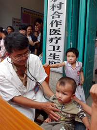 廣西河池市用新農(nóng)合解決移民看病難問(wèn)題。這是到村級(jí)衛(wèi)生所值班的醫(yī)生在移民安置區(qū)給一名兒童看病。 新華社記者:張愛(ài)林 攝