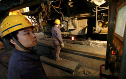 吉林省通化鋼鐵集團(tuán)結(jié)構(gòu)調(diào)整產(chǎn)品升級技術(shù)改造工程日前正式竣工投產(chǎn)。截止到目前,通鋼股份公司大型化改造的主體工程已陸續(xù)改造完成并投產(chǎn),600萬噸鋼生產(chǎn)能力已全面形成,該工程的竣工投產(chǎn)標(biāo)志著通鋼集團(tuán)結(jié)構(gòu)調(diào)整和產(chǎn)品升級登上了一個(gè)新的臺(tái)階。2007年1至9月份,通鋼集團(tuán)實(shí)現(xiàn)工業(yè)總產(chǎn)值138.9億元,比去年同期增長24.75%。圖為工人正在生產(chǎn)線上緊張忙碌。 |