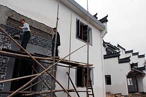 | 安徽徽州區(qū)潛口鎮(zhèn)群眾正在建設(shè)新房。新華社記者 馬平