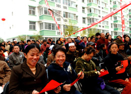 2007年10月12日,租到廉租房的銀川市部分城市低保戶在入住儀式上。新華社記者:劉泉龍