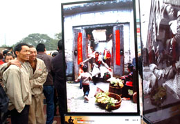 兩位進(jìn)城務(wù)工的青年正在觀看由重慶市委宣傳部等單位主辦的重慶農(nóng)民工風(fēng)采攝影展。 |