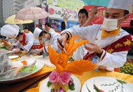 重慶餐飲業(yè)農(nóng)民工正在比賽技能。 | 編者按: