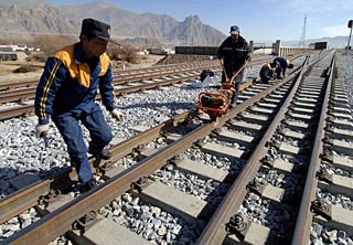 | 中鐵天路養(yǎng)護(hù)工程有限公司的工人在西藏堆龍德慶縣境內(nèi)對(duì)青藏鐵路進(jìn)行檢查和養(yǎng)護(hù)。新華社記者 覺果