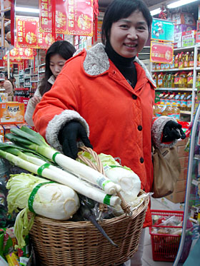 | 蘇州一家大型超市推出了環(huán)保藤編籃。顧客只要交10元錢押金,就可以將購(gòu)買的商品用藤編籃帶回家。顧客可憑證退回押金。新華社發(fā)