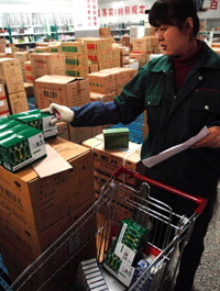 寧夏藥品統(tǒng)一配送 銷售價格大幅下降。1月24日,寧夏郵政公司藥品配送人員在庫房取藥。新華社記者:劉泉龍