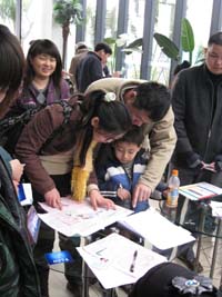 廣州首個(gè)限價(jià)房項(xiàng)目——保利西子灣2月16日正式接受簽約。簽約的市民臉上都露出了欣喜的笑容。圖為一家三口正在仔細(xì)地閱讀購(gòu)房合同。