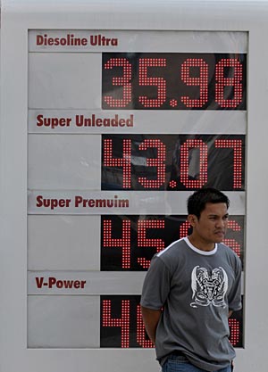 | 一名男子站在菲律賓首都馬尼拉一座加油站的標價牌前。新華社/法新 | 關(guān)注產(chǎn)業(yè)政策調(diào)整帶來的機遇