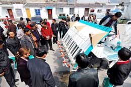 春耕前農(nóng)民學(xué)農(nóng)機(jī)技術(shù)熱。3月18日,巢湖市居巢區(qū)部分種糧大戶和農(nóng)機(jī)戶正在觀看新機(jī)具現(xiàn)場(chǎng)演示。 新華社發(fā)(何希斌