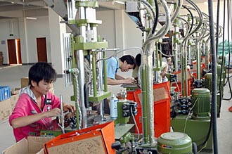 | 一家南寧的臺資企業(yè)工人在操作機器。新華社記者 張周來