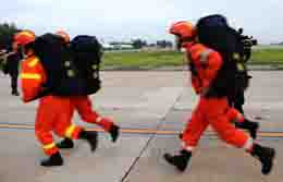 5月12日,中國國家地震災(zāi)害緊急救援隊隊員在北京南苑機場集結(jié)。 當日,中國地震局新聞發(fā)言人張宏衛(wèi)通報,針對四川汶川地震,中國地震局已啟動一級預(yù)案,一支180人的救援隊已經(jīng)集結(jié)。新華社記者:王建華