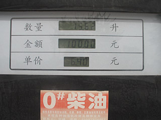| 河北省一家個(gè)體加油站,顧客加油15.62升,支付金額100元,柴油價(jià)格顯示為6.40元/升。本報(bào)記者 曹國(guó)廠