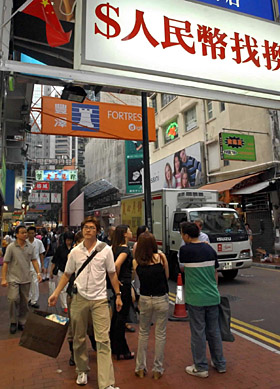 香港街頭人民幣兌換點(diǎn)隨處可見。新華社記者 王小川