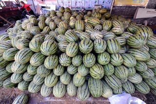 8月31日,在山西省太原市東崗路集貿(mào)市場(chǎng),一名小孩在一處西瓜攤點(diǎn)旁玩耍。近日,財(cái)政部、國家發(fā)改委、國家工商總局聯(lián)合發(fā)出通知,決定從2008年9月1日起在全國統(tǒng)一停止征收個(gè)體工商戶管理費(fèi)和集貿(mào)市場(chǎng)管理費(fèi)。 |