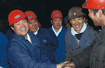 七煤集團公司董事長、黨委書記劉文波(右一)和七煤集團公司總經(jīng)理王洪木(左一)經(jīng)常深入井下作業(yè)現(xiàn)場解決實際問題。   龍煤集團黨委書記、總經(jīng)理侯仁(右一)在七煤集團井下檢查安全生產(chǎn)工作。