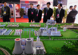 在太原舉辦的第二屆中國國際煤炭與能源新產(chǎn)業(yè)博覽會上,煤氣化、煤化工、新能源等循環(huán)經(jīng)濟項目在會展上成為一大亮點,備受人們關注。圖為客商在參觀中電集團區(qū)域循環(huán)經(jīng)濟的示范沙盤。新華社記者
