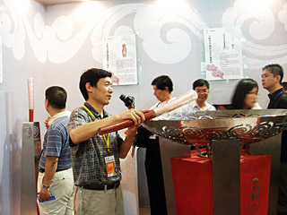 | 第五屆專博會上,參展觀眾對華帝公司展出的奧運祥云火炬、圣火盆產(chǎn)生了濃厚興趣。本報記者 肖思思