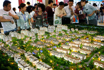 | 2006年,北京市民在第22屆房交會(huì)上觀看樓盤模型。 |