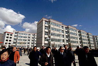 2007年11月,即將竣工的拉薩陽光家園廉租房小區(qū)。2007年8月7日,國務(wù)院發(fā)布《關(guān)于解決城市低收入家庭住房困難的若干意見》,廉租房被擺在了顯要位置。 |