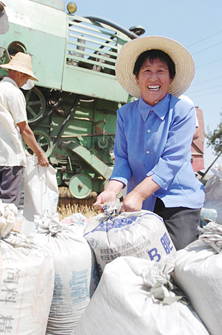 | 2005年6月15日,農(nóng)民張梅英高興地說:“今年我家的8畝優(yōu)質(zhì)小麥能賣5000多元錢”。河北省藁城市種植的優(yōu)質(zhì)小麥,全部是市農(nóng)研所自己研發(fā)的小麥優(yōu)良品種,全部被北京、天津、山東等地的大型專用面粉加工企業(yè)訂購一空。 |