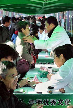 7日,“中醫(yī)重要中國行”江蘇站啟動儀式現(xiàn)場舉辦的宣傳、義診等活動吸引了數(shù)千南京市民。新華社記者 孫參