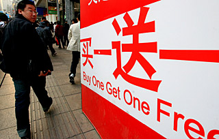 走進(jìn)上海各大商場(chǎng),“滿300送300券”“買300折150元”的海報(bào)滿目皆是,人流如浪潮般涌來,促銷員高分貝的“特賣”聲音敲擊耳膜,讓人們暫時(shí)忘記了正在波及全球的金融風(fēng)暴。 試衣間門口、收銀臺(tái)前、電梯上下,“排隊(duì)”成為無一例外的“規(guī)定動(dòng)作”。在上海梅龍鎮(zhèn)廣場(chǎng),一名等待試衣的女孩氣喘吁吁,手里抱著大衣,肩上搭著褲子,“排一次隊(duì)不容易,索性把看上的衣服都帶進(jìn)去一次試好!彼f。 上海南京路眾多商廈自11月上旬起啟動(dòng)“百日營銷”活動(dòng),用明扣或打折送券等方式擴(kuò)大銷售。12月6日、7日兩個(gè)雙休日,新世界商場(chǎng)銷售額一舉突破億元大關(guān),僅7日接待客流接近50萬人次,逼近國慶黃金周日最高客流,日銷售額突破5800萬元。第一百貨、永安百貨、巴黎春天等商場(chǎng)也紛紛展開攻勢(shì),各類營銷活動(dòng)此起彼伏,面對(duì)不息的人流,部分店家只好采用“進(jìn)一批,出一批”的方法分批入場(chǎng)。全場(chǎng)買贈(zèng)的營銷策略也吸引了不少男士,“平日里不愛逛商場(chǎng),但這次傾巢而出也是明智之舉,實(shí)惠啊。”一群時(shí)尚男士穿梭在人群里,格外顯眼。