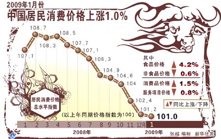 1月份PPI降幅比上月擴(kuò)大2.2個百分點,出乎絕大多數(shù)研究人員的預(yù)料。原因何在?國家統(tǒng)計局給出了兩點解釋: 一是美國金融危機(jī)引起全球?qū)嶓w經(jīng)濟(jì)快速下滑,國際市場原油、礦石、糧食等基礎(chǔ)性產(chǎn)品價格顯著下降,致使我國此類大宗產(chǎn)品進(jìn)口價格明顯下降,進(jìn)而引起去年持續(xù)處于高位的生產(chǎn)資料價格下降較多,并通過產(chǎn)業(yè)鏈條逐漸往中下游傳導(dǎo),導(dǎo)致主要類別產(chǎn)品價格的全面走低。比如,1月份,國際市場上非能源價格同比下降25.5%,降幅比12月份擴(kuò)大1.2個百分點;金屬價格下降41.4%,擴(kuò)大5個百分點,其中鋁價下降42.2%,擴(kuò)大5.3個百分點。 二是去年價格高企的負(fù)滯后影響。2008年工業(yè)品出廠價格前8個月漲幅逐漸擴(kuò)大,形成了一個較高的基數(shù)平臺,9月份以后工業(yè)品出廠價格開始環(huán)比下降,2008年12月份的平均價格水平已低于2008年1月份的水平,致使2008年的工業(yè)品價格變動對2009年的滯后影響為負(fù),全年大約為負(fù)4.3個百分點。其中,2008年對2009年1月份的滯后影響大約為負(fù)1.5個百分點,并且這種負(fù)的滯后影響在2009年8月份以前還將逐月擴(kuò)大。因此,即使2009年工業(yè)品價格不再下降,全年的工業(yè)品價格同比漲幅仍然為負(fù),表現(xiàn)為2009年工業(yè)品價格同比指數(shù)的明顯下降。 另外,統(tǒng)計局強(qiáng)調(diào),從分類上看,PPI價格有漲有落。在工業(yè)品出廠價格中,盡管黑色金屬冶煉及壓延加工業(yè)出廠價格和有色金屬冶煉及壓延加工業(yè)出廠價格同比分別下降7.2%和24.6%,但煤炭開采和洗選業(yè)出廠價格同比上漲22.7%,其中原煤出廠價格上漲12.3%;汽油、煤油出廠價格分別上漲2.1%和3.1%。