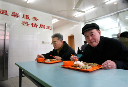 2月12日,在靜安區(qū)石門二路街道新福康里“樂齡家園”,社區(qū)的老人們正在用午餐,目前,全區(qū)27個“樂齡家園”每天為老人供應(yīng)午餐、晚餐2500多份,被老人親切地稱作“老年食堂”。