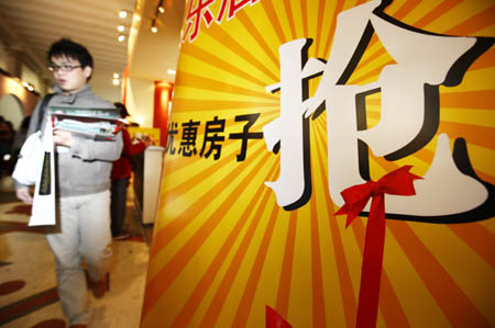 在近日舉行的“上海之春房展會(huì)”上,開(kāi)發(fā)商紛紛推出各類打折促銷活動(dòng)。新華社記者:裴鑫