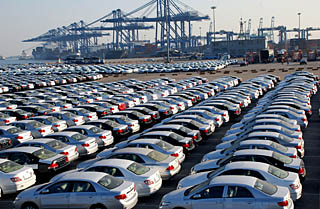 | 天津港一批等待裝船出口的天津一汽豐田轎車。新華社記者 劉海峰