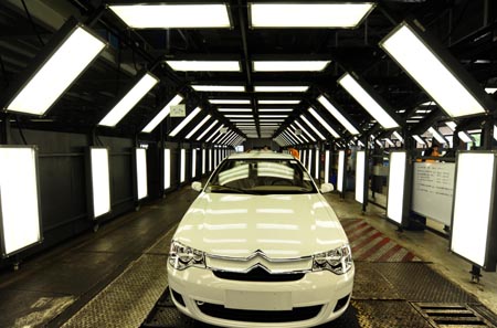 東風(fēng)汽車公司一季度銷售回暖,實(shí)現(xiàn)整車銷售34.1萬(wàn)輛,相比2008年第四季度增長(zhǎng)10.4%,圖為東風(fēng)汽車旗下的神龍汽車有限公司總裝車間的新車在經(jīng)過(guò)檢測(cè)線。新華社記者:程敏