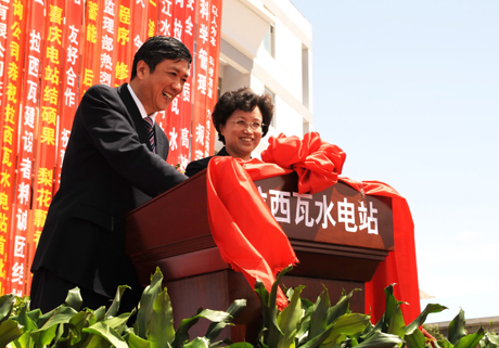 5月18日,在拉西瓦水電站首批(兩臺(tái))機(jī)組投產(chǎn)發(fā)電慶典現(xiàn)場(chǎng),青海省省長(zhǎng)宋秀巖和中電投集團(tuán)公司總經(jīng)理陸啟洲共同啟動(dòng)拉西瓦水電站5號(hào)、6號(hào)機(jī)組。 | 這是一座目前黃河流域大壩最高、裝機(jī)容量最大、送出電壓等級(jí)最高的水電站;這是一座施工工期最短、設(shè)計(jì)優(yōu)化成果最顯著、單位千瓦投資最低的水電站;這也是一座庫(kù)區(qū)移民少而環(huán)保效益高、當(dāng)?shù)匕傩兆顬闈M意的水電站。 這就是位于青海省貴德縣和貴南縣交界處黃河上游拉西瓦水電站。 5月18日,即中國(guó)電力投資集團(tuán)黃河水電公司拉西瓦水電站首批機(jī)組并網(wǎng)發(fā)電的日子,記者登上青藏高原,走近拉西瓦……
