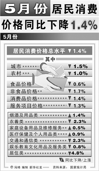 5月份CPI降幅同比縮小環(huán)比擴(kuò)大PPI降幅同比繼續(xù)擴(kuò)大
