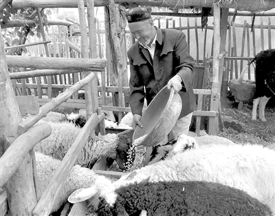 新疆阿瓦提縣拜什艾日克村的庫萬尼亞孜·艾買提在喂羊。他從渣打銀行獲得1.5萬元無抵押貸款。本報記者劉宏鵬 攝
