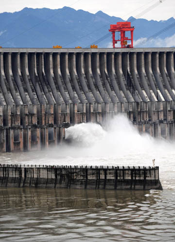 6月30日,三峽大壩開(kāi)啟一個(gè)泄洪閘門(mén)泄洪。由于連日持續(xù)降雨,已進(jìn)入主汛期的長(zhǎng)江三峽水庫(kù)入庫(kù)流量大增,當(dāng)日,三峽水電站迎來(lái)初步設(shè)計(jì)的26臺(tái)機(jī)組全部投產(chǎn)后的首次滿(mǎn)負(fù)荷發(fā)電。