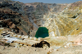 北出白銀市區(qū)15公里,這座直徑千余米的巨型大坑,是白銀公司昔日的露天銅礦采場。