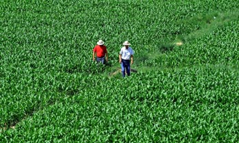 技術(shù)人員查看張掖市甘州區(qū)制種玉米的生長情況。本報記者 韓傳號