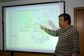 太原市環(huán)保局信息中心主任趙春峰正在分析太原市環(huán)保信息監(jiān)測系統(tǒng)實時監(jiān)測到的“二氧化硫排放占80%以上的企業(yè)”的污染排放動態(tài)。本報記者 南婷