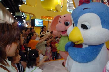 杭州的兩個卡通形象吸引了大批的參觀者。杭州動漫產業(yè)近年來取得跨越式飛速發(fā)展,經(jīng)濟利潤增長顯著,僅今年上半年,動漫游戲衍生產品收入達1620萬元,相當于去年同期的近兩倍。目前,杭州已擁有5個國家級動漫基地,動漫企業(yè)135家,從業(yè)人員1萬余人,動畫片年生產總量連續(xù)多年位居全國前列。