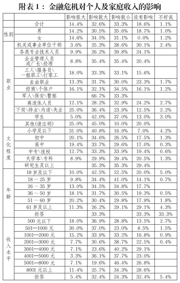 二、城市居民對金融危機影響的感受
