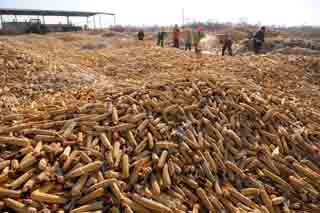 內(nèi)蒙古巴彥淖爾市杭錦后旗頭道橋鎮(zhèn)農(nóng)民正在場院中脫粒玉米。新華社記者 張領(lǐng)/攝 |