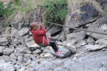 記者驅(qū)車從怒江州府所在地六庫鎮(zhèn)出發(fā),沿著怒江一路北行,多次看到當(dāng)?shù)匕傩樟锼鞫^。福貢縣馬吉鄉(xiāng)旺基獨村村民阿起說,她是過江來買鹽的,如果不用溜索,要多走1個多小時!拔覀兇笕诉^溜索很正常,但是小孩上學(xué)要單獨溜索,還是很危險的!