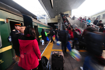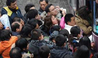 又是一年“春運潮”。 2010年1月20日離2010年春運還有10天之時,全國各地火車站就已提前迎來了以學生和農(nóng)民工及探親流為主的客流小高峰。臨近春節(jié),返鄉(xiāng)的人越來越多,記者也在進入春運的第13天——2月11日,親身體驗了今年的“春運潮”,總體感受就兩個字——“人多”。 在北京建國門地鐵站下車,從1號線轉(zhuǎn)乘2號線,即使不知道乘車的方向,根據(jù)等車兩邊的行人數(shù)量便可以判斷:人多、多數(shù)人手提行李的一面一定是去北京站方向的。到了北京站,一出地鐵就能聽見工作人員的喊聲:“去火車站的C口出!”。其實無需刻意尋找出口,跟著人群走準沒錯。出站口的電梯連續(xù)不斷地滿載,終于在當天下午兩點半罷工了——行人只能走樓梯。 售票處就更不用說了。車站對外廣播間或有退票公告,通知需要車票的乘客到售票窗口購買。因為是下午,售票窗口前的隊伍長不過5、6人,反而是退票處排起了長隊。為了防止混亂,車站請專門管理員維持秩序,退票者需持車票才能進入設有圍欄的退票專區(qū)。不少還沒買到票的人在圍欄外張望,不時有人喊:“有沒有沈陽的票”“有沒有退合肥的票的”…… 伴隨著人流增多的,是安保人員。記者統(tǒng)計了一下火車站內(nèi)的警車數(shù)量——包括一輛大型特警指揮車在內(nèi)共21輛。 火車票一票難求,春運高峰期機票的銷售也相當火爆,有的熱門航線早就買不到票了。記者從游易旅行網(wǎng)了解到,今年春運的機票銷售和往年一樣火爆,即使是和去年剛開通的高鐵相撞的航線也照樣銷售旺盛,而且春運高峰期的火車票不易買,很多人還是要選航空。 據(jù)悉,目前返鄉(xiāng)航線的機票最為熱銷,北京至武漢、長沙、南昌、長春、沈陽等線路在2月9號至12日的機票非常緊俏,全價的經(jīng)濟艙都已經(jīng)預訂不到位置,少數(shù)時段不好的航班還有極少量的經(jīng)濟艙座位或頭等艙座位,部分日期只剩下一兩趟航班有極少量的位置,不少航線10號當天的機票早早銷售一空。 2010年的春運從1月30日起至3月10日,為期40天,其中節(jié)前15天,節(jié)后25天。