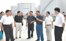 靜?h委書記孫文魁(右一),縣長陶潤立(左一)等領(lǐng)導(dǎo)前來唐官屯物流園指導(dǎo)工作。 |