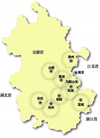 皖江城市帶包括合肥、蕪湖、馬鞍山、銅陵、安慶、池州、巢湖、滁州、宣城九市以及六安市的金安區(qū)和舒城縣,共59個縣(市、區(qū)),土地面積7.6萬平方公里,人口3058萬人,2008年國內(nèi)生產(chǎn)總值5818億元,分別占全省的54%、45%和66%。皖江城市帶是實施促進(jìn)中部地區(qū)崛起戰(zhàn)略的重點開發(fā)區(qū)域,是泛長三角地區(qū)的重要組成部分,在中西部承接產(chǎn)業(yè)轉(zhuǎn)移中具有重要的戰(zhàn)略地位。 皖江城市帶處于我國人口密集、消費需求較大的最靠近東部的中部地區(qū),以合肥為中心,半徑500公里覆蓋上海、江蘇、浙江、河南、江西、湖北、山東七省一市,這一區(qū)域經(jīng)濟發(fā)展水平高,消費潛力巨大。 |