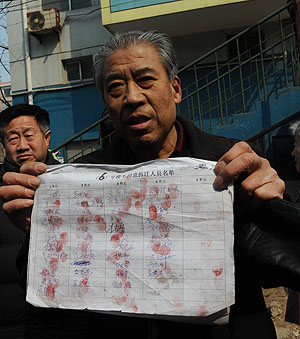 享園小區(qū)居民向記者展示“不同意拆遷人員名單”新華社記者 王民 攝