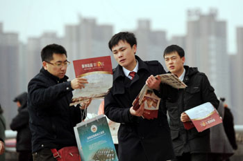 3月24日,在沈陽春季房交會(huì)上,售樓員向市民介紹樓盤信息。70多家房地產(chǎn)開發(fā)企業(yè)的102個(gè)樓盤參展,可銷售商品住宅25600套,而參展中介機(jī)構(gòu)提供二手房源達(dá)6萬套。新華社發(fā)(楊新躍/攝) |