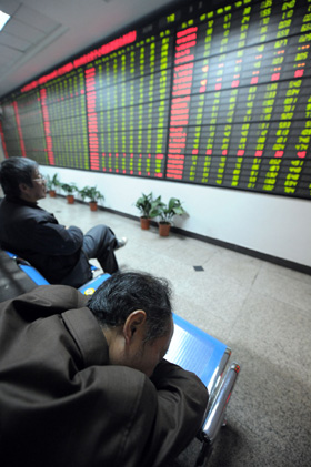 4月19日,滬市失守3000點(diǎn)。股民在安徽合肥一證券交易大廳內(nèi)關(guān)注行情。新華社記者 郭晨