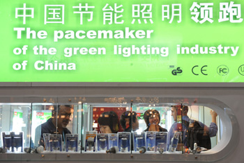 4月18日,客商在廣交會選購節(jié)能燈具。新華社記者 盧漢欣