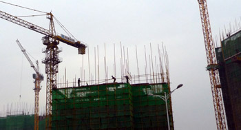 4月底5月初,受國(guó)家房貸新政及央行上調(diào)存款準(zhǔn)備金率等一系列政策影響,湖南省會(huì)長(zhǎng)沙部分樓盤出現(xiàn)小幅價(jià)格回調(diào),一些業(yè)內(nèi)人士分析認(rèn)為,長(zhǎng)沙房?jī)r(jià)暗降將會(huì)是今后一兩年內(nèi)的趨勢(shì),而剛剛結(jié)束的長(zhǎng)株潭房地產(chǎn)交易會(huì)上“看多買少”的情況似乎也證實(shí)了這一點(diǎn),但就長(zhǎng)沙整體房?jī)r(jià)形勢(shì)的走向,大多市民仍持觀望態(tài)度,今后一段時(shí)期內(nèi),房?jī)r(jià)問題將越發(fā)敏感。圖為工人們?cè)谝惶幷诮ㄔO(shè)中的樓盤上施工。新華社記者 趙眾志/攝 |